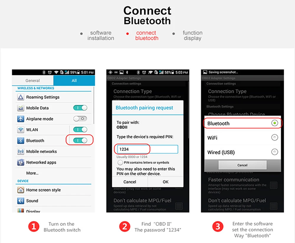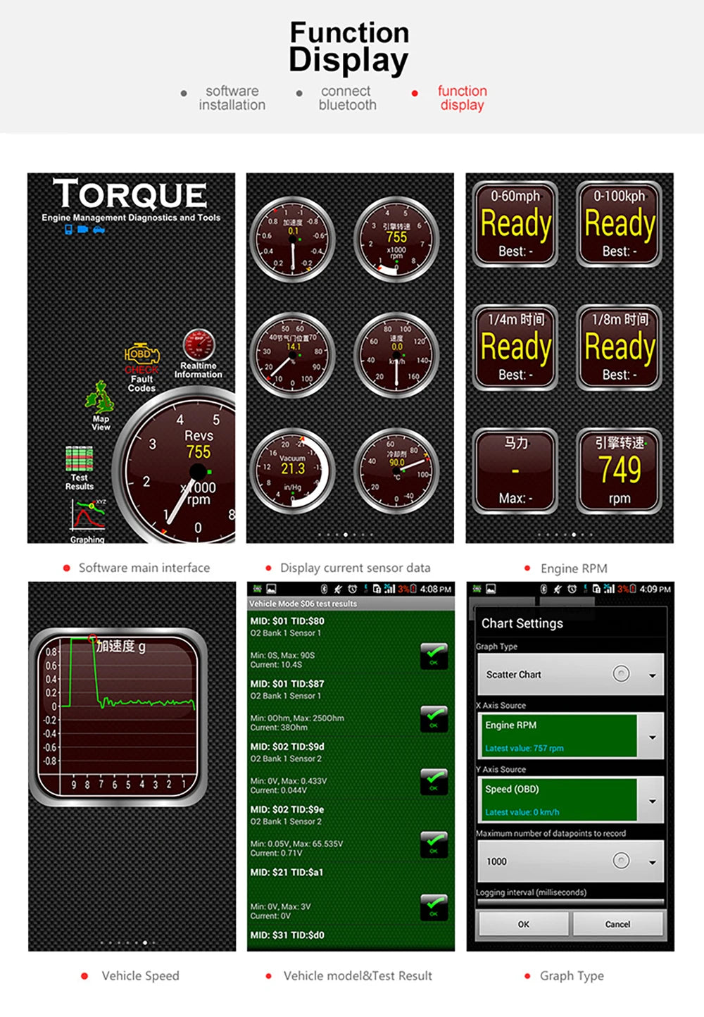 • Bluetooth Connectivity :Connects to your car's Bluetooth system for easy and convenient diagnostics.